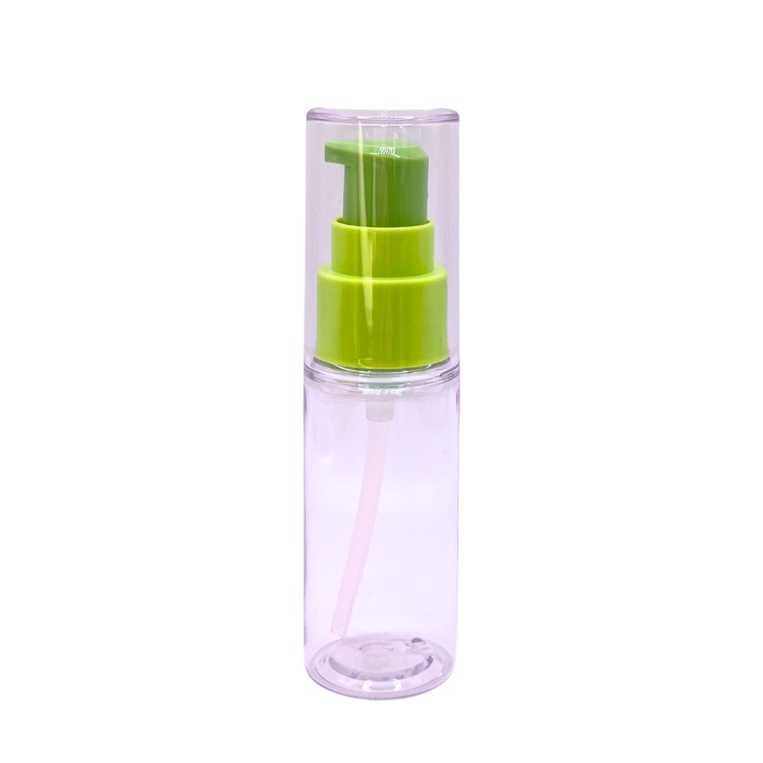 PET bottle with treatment pump Size: 25ml Bottle dimension: 28.4*103 (mm) Closure size: 20/410 Output: 0.1cc Major material: PET Application: lotion, seryum, eye cream..etc